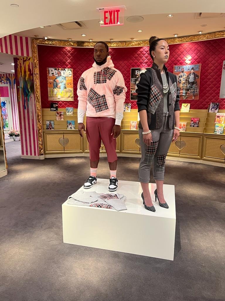 Among a variety of fascinating designs, a few stand out as featured looks, all embodying Haynes’ unique blend of comfort, practicality, and style. The Cotton Pink Shirt Dress, with its dressy yet comfortable feel, was a showstopper. The Two-Tone Gray Sleeveless Denim Dress, embodying Haynes’ unique aesthetics, was another highlight. Not to forget, the Rib Knit Blazer paired with plaid trouser pants offered a nod to classic suiting while maintaining a contemporary edge.
